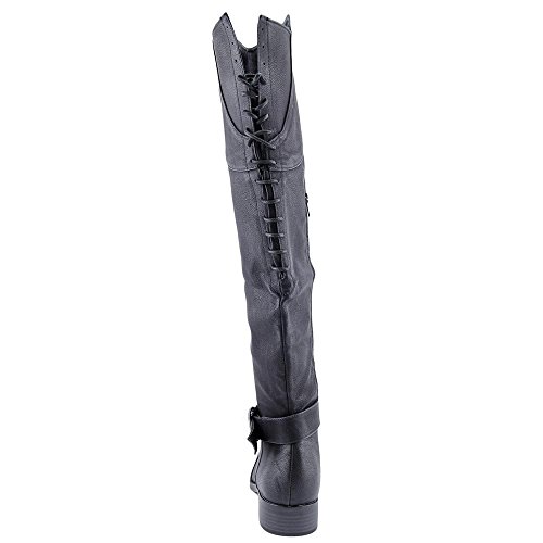 Exclusive panel construction and corset lacing at the back develop slinky allure in the Also Jayden in excess of-the-knee boot by 2 Lips As well. Featuring an upper of supple faux leather with a chunky accent strap at the ankle for a biker seem, this women\'s tall boot has an inside expansion-zipper to ease the foot by means of the svelte ankle for rapid entry and elimination.