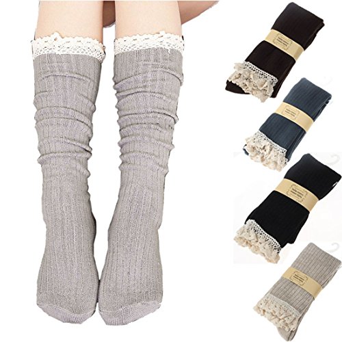 Package deal Material: 1Pair Ladies Crochet Lace Trim Cotton Knit Footed Leg Boot Knee Substantial Stocking