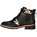 - Chelsea ankle boot featuring dual buckle straps with gold-tone hardware, elastic-goring side panels, and rear-zip entry