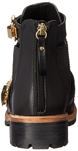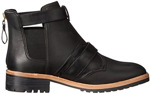 Women chelsea minimize-out boot with back zip. Buckles, slacked heel and lug sole
