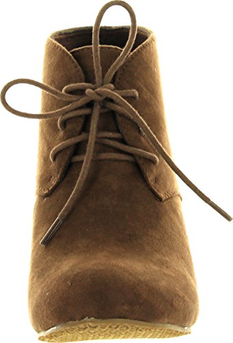 Anna Womens Sally-5 Adorable Almond Toe Lace Up Wedge Ankle Bootie