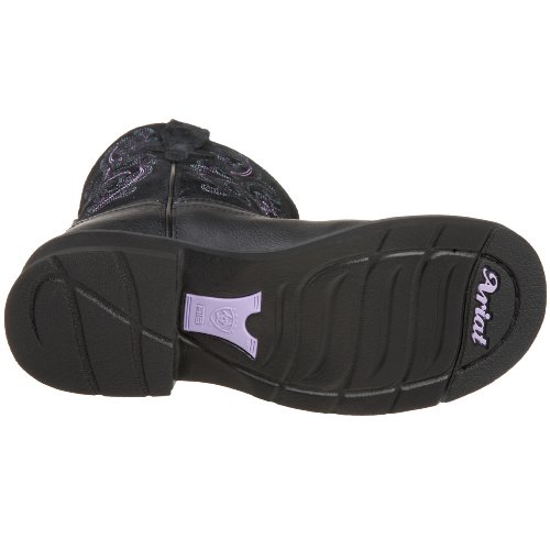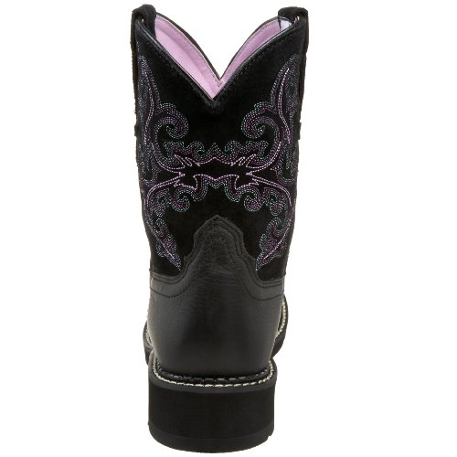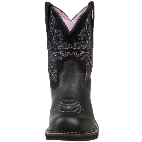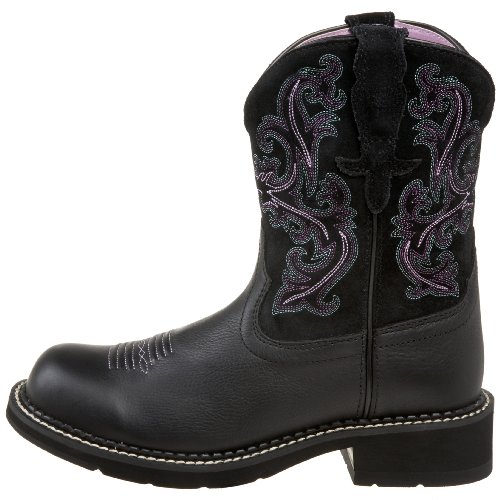 Ariat Boot Organization ATS technologies supports and cushions as you move, advertising great posture and decreasing fatigue. At the core of ATS engineering is the Ariat ATS composite shank. This patented shank layout lowers skeletal and muscular fatigue and injury. Mid-foot assistance minimizes metatarsal anxiety. The forked shank layout allows all-natural forefoot flex. The ATS footbed has a minimal-friction surface to defend from heat construct-up and blistering. Shock-absorbing gel forefoot cushion lowers skeletal influence pressure on knees, hips, and decrease back. Cupped footbed chassis gives torsional stability. This Ariat Fatbaby boot will take the \"ho-hum\" out of your western wardrobe with a standout black and purple pairing of hues Boot attributes a soft black deertan leather foot underneath a fancy stitched eight\" black suede leather shaft. Fancy suede pull straps. Purple leather lining and taped inside seams. Cushioning, energy-return EVA footbed is removable. Moisture-wicking, anti-bacterial footbed liner wicks sweat away and blocks odor. Single stitched welt. one 1/2\" Duratread heel. Round toe.