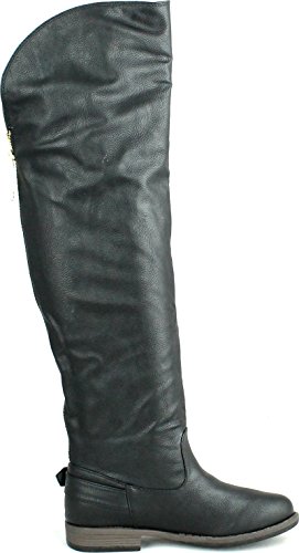 Bamboo Womens Montage-80X Over The Knee Buckle Riding Boots,Black,7