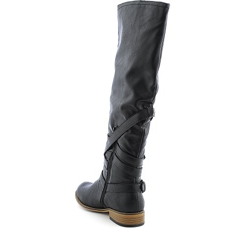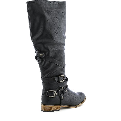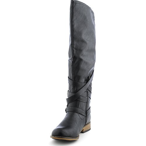 The casual boot search from the Bamboo collection. The Parksville-ten boot attributes a vegan leather upper and faux wooden minimal heel. Wrap close to ankle straps and a side mid zipper for closure an a safe match. Pairs well with skinny jeans. Vegan leather Faux wooden heel Wrap close to ankle straps Side mid zipper Cushioned insole Shaft height: 17 in. Opening: 15 in. Heel height: 1 in.