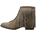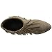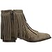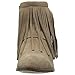 - Ankle boot featuring all-around fringe draping over dual buckled straps