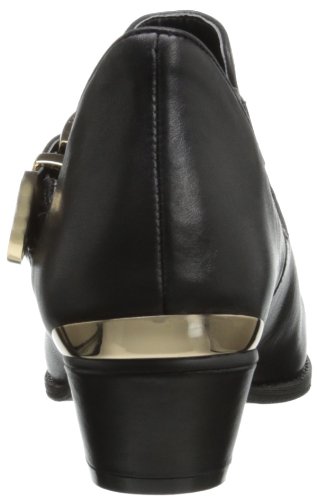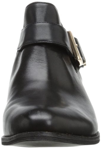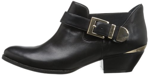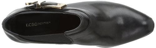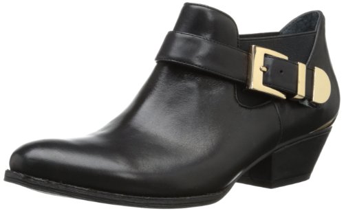 Fall in enjoy with the sophisticated Wallis bootie. BCBGeneration introduces a black leather enveloped silhouette with elastic accent. A 4 3/4 inch shaft is highlighted with a buckle detail while a 1 inch block heel delivers a lift.
