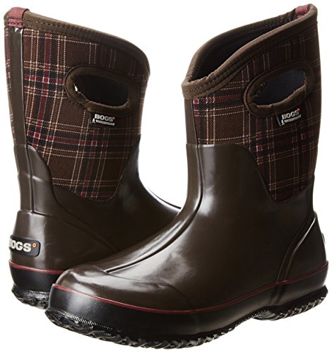 Bogs Women's Classic Mid Winter Plaid Waterproof Winter & Rain Boot,Chocolate Multi,9 M US