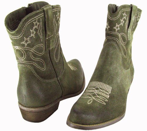 Brand Boutique 9Style: Jolisa Obtainable Colors: Cognac, Purple, Dark Green Decorative topstitching embellishes a Western-design ankle boot crafted from distressed, unlined suede for a vintage search. Stacked heel gives a gentle lift, although the versatile forefoot enhances comfort.