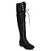 Breckelle AF57 Women Leatherette Military Lace Up Knee High Boot - Black (Size: 6.0)