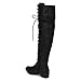 Finish off your look with an edgy touch in these military boots! Created with leatherette upper, round toe front, lower heel, knee higher construction, lace up closure at front of shaft, partial side zip for straightforward on/off, smooth interior lining, and finished with lightly padded insole.