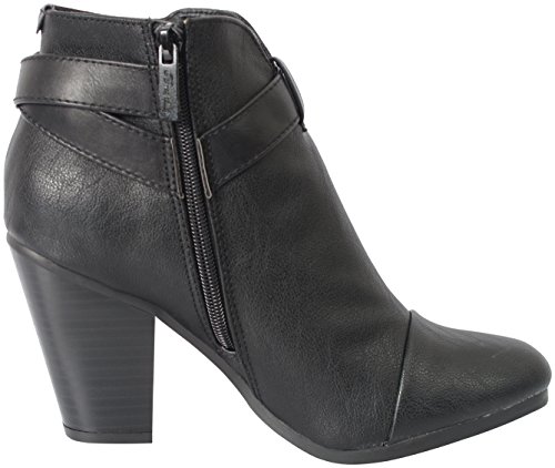 Breckelle's GAIL-22 Women's Belted Chunky Stacked Heel Ankle Booties Black 8 B(M
