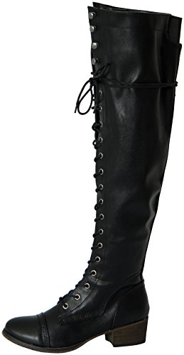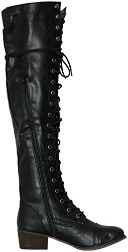 Breckelles Women's ALABAMA-12 Above the Knee Lace Up Combat Boots Black 8 B(M)