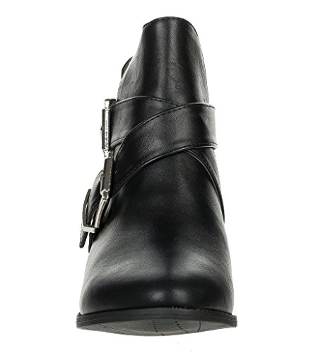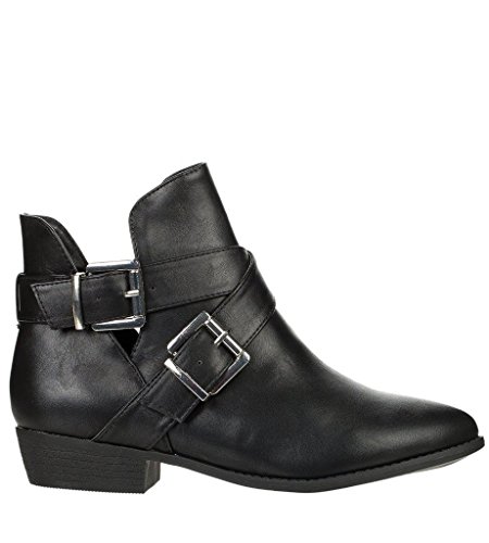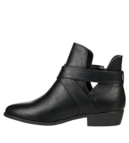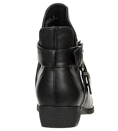 Cut Out Biker Moto Buckle Stacked Chunky Substantial Heel Ankle Booties Boots