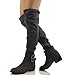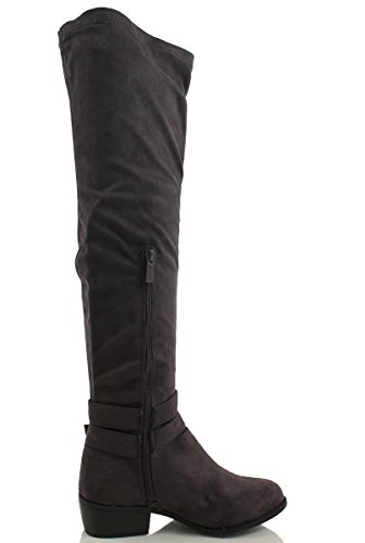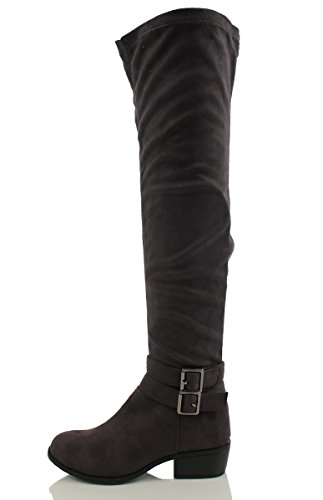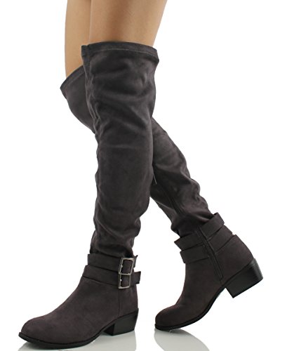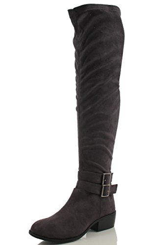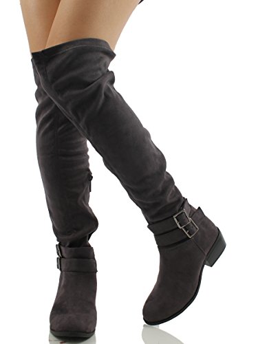 Breckelle's Women's Medison -16 Suede Double Buckle Strap Over the Knee Flat Boot, Grey, 9 M US