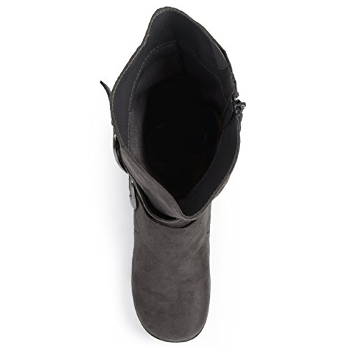 Brinley Co. Womens Buckle Knee-High Slouch Boot In Regular and Wide-Calf Sizes Grey 10