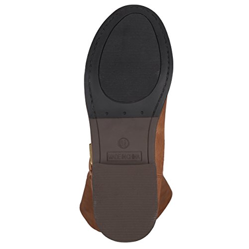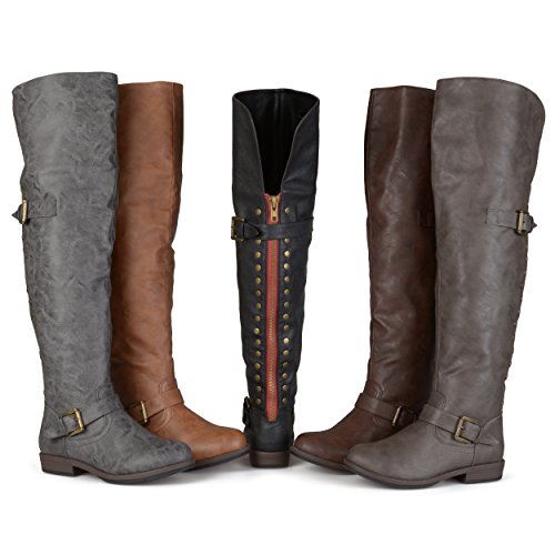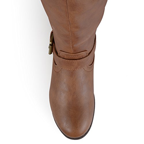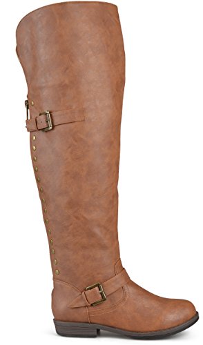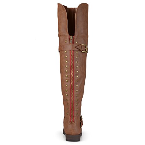 Brinley Co. Womens Wide Calf Over-the-knee Inside Pocket Buckle Studded Boots Chestnut 8 Wide Calf