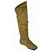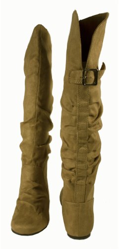 Cheryl! By Soda Fashion Slouchy Knee-high Flat Boots with Ruched Back Design and Buckle Adornment, light taupe faux suede, 6.5 M