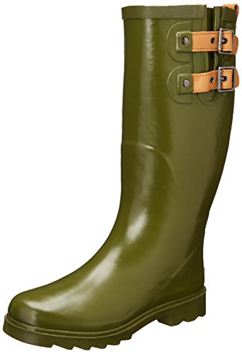 These challenging-functioning rubber boots from Chooka go from garden to grocery store in style. Shiny rubber uppers in brilliant colors put a spring in your phase no matter the climate. Leather side buckles modify for an simple match more than pants. Lug soles for traction moisture-absorbing cotton lining and removable padded insole. Pull-on fashion with back pull loop approx. 13\"H shaft. • Chooka® women\'s tall rain boots with shiny uppers • Rubber uppers with leather buckle details • Sawtooth outsole for traction • Lightly padded removable footbed • 13\"H shaft Colours Black Brilliant Plum Charcoal Crimson Red Olive Drab Teal Size Women\'s entire sizes six -ten This listing is for Olive Drab.