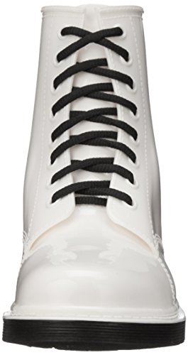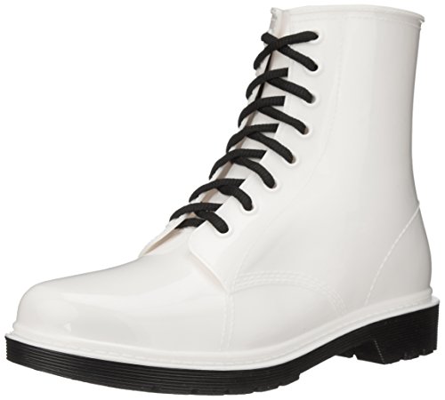 Rainy days are no match for you in the Quinn from Circus by Sam Edelman. This rubber boot comes in white shade with black laces and rugged sole. This boot has a rounded toe and one inch block heel.