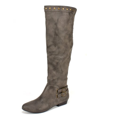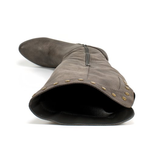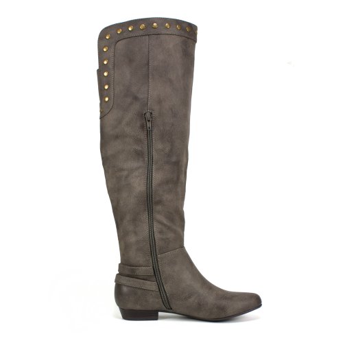 three trends in 1! A riding boot that brings collectively this season\'s biker, gold and studded trends for a special blend of style forward design.