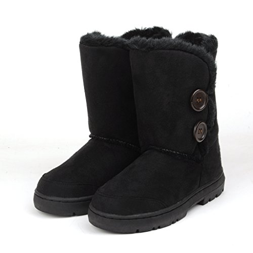 Clpp'li women snow boots Button Fully Fur Lined Waterproof Winter Snow Boots-Black-9