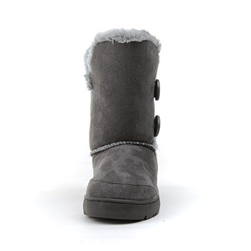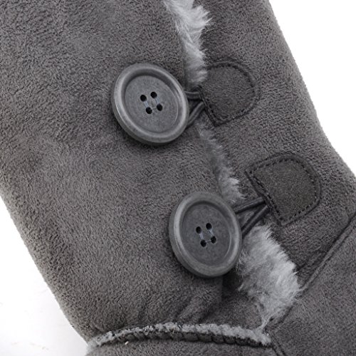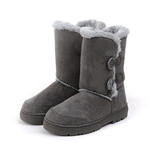 Clpp'li Womens Twin Button Fully Fur Lined Waterproof Winter Snow Boots-Grey-8