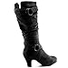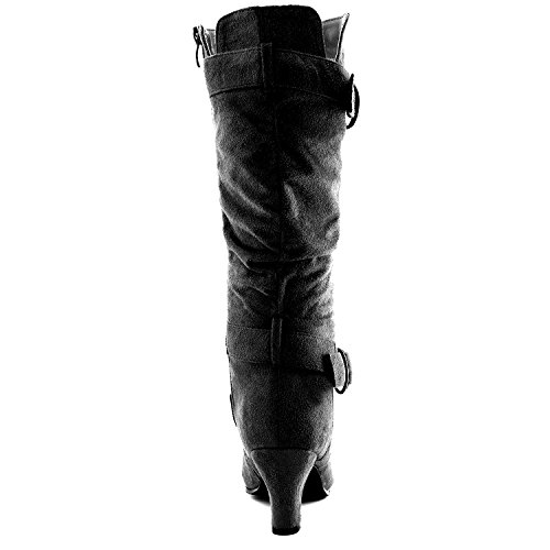 Dailyshoes Women's Slouchy Mid Calf Strappy Boots with Ankle and Top Straps - 2" Heel Fashion Boots,9 B(M) US,Black SV w/Side Pocket
