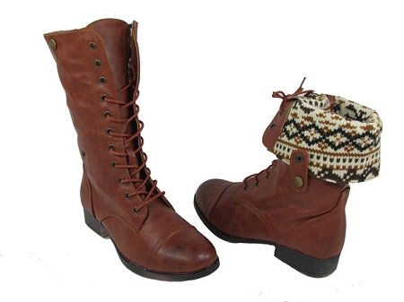This military inspired combat boots can be warn folded down or pulled up. The Shaft measures ten inches and circumference is twelve inches. By Classy Footwear.