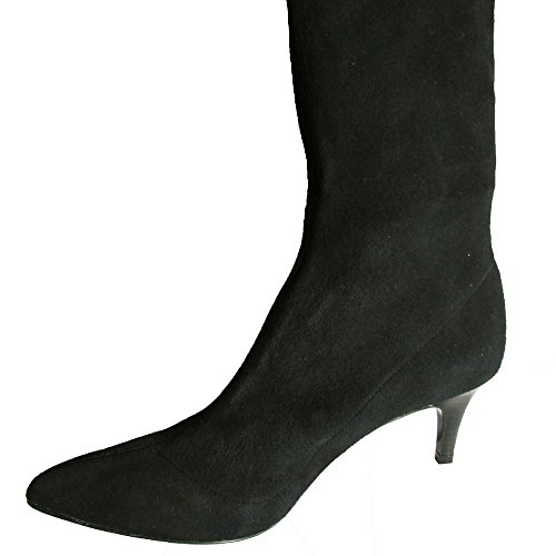 - Delman offers sleek style with classic suede stretching to the knee.