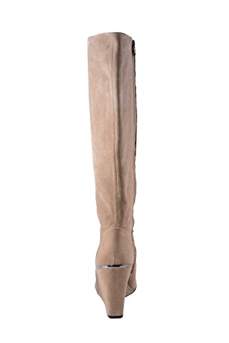 - A concealed wedge extends the vertical reach of this sleek leather boot.