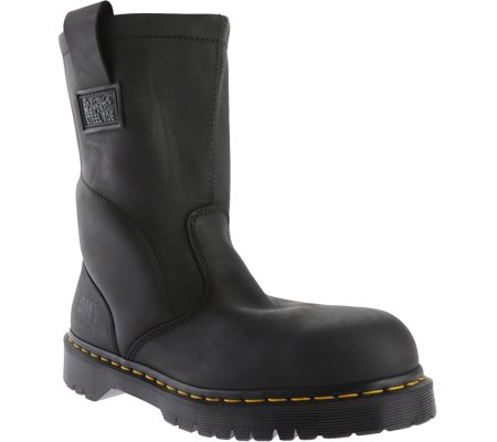 Slip-on, steel toe Wellington boot with contoured total cushion insole and complete quarter and vamp lining. Slip-resistant, patented air cushion sole resists oil, excess fat acid, petrol and alkili. Electrical Hazard Licensed. Leather: Industrial Greasy is a complete-grain leather with integral oiling which gives the surface an oily really feel and robust nature. Sole/Stitching: SBF sole. Dr. Martens Size Chart (orders placed in United kingdom sizes):.