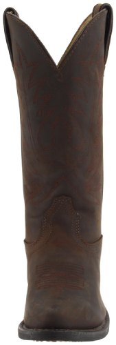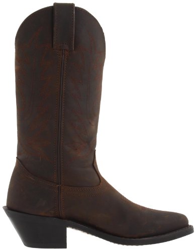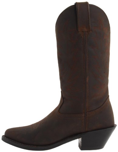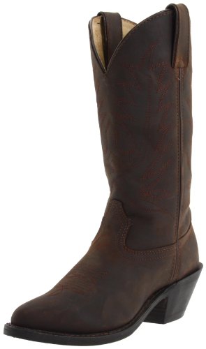Durango sets this cowgirl boot apart with a distressed leather foot and matching ten 1/2\" fancy stitched leather shaft. Attractive, tough hand stained composition outsole. Cowgirl heel and pointed toe.