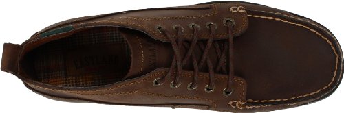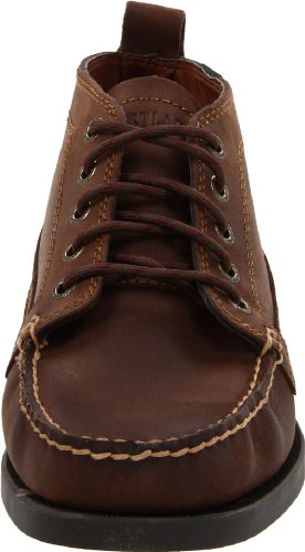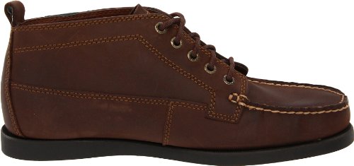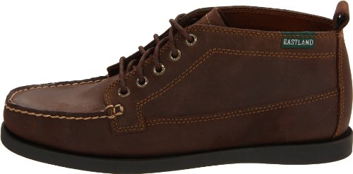 An Eastland camp moc traditional in a 5-eyelet chukka for weekends at the lake or everyday rambling. Handsewn moccasin construction, simple to care for soft and smooth leather upper, entirely lined, cushioned footbed and supportive shank decreases foot and leg fatigue, shock absorbing, flexible organic rubber outsole provides sturdiness and traction. Boot height: 2 3/4\'\'. Heel height: five/8\'\'. Materials: Leather, Rubber.