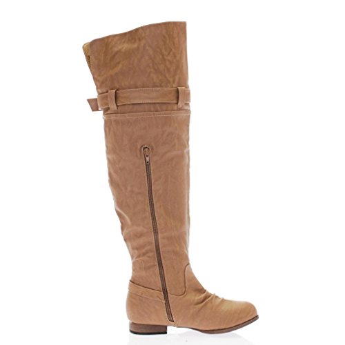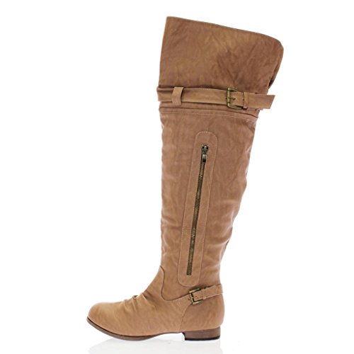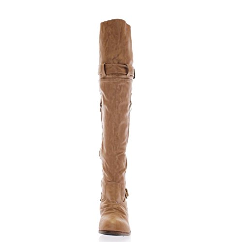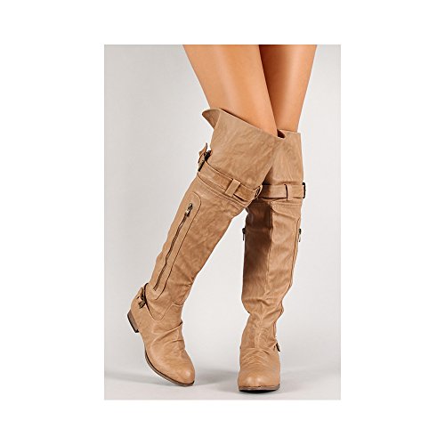Faux Suede Leatherette Buckle Zip Up Round Toe Wooden Heel Over the Knee OTK Thigh High Boot TN7.5