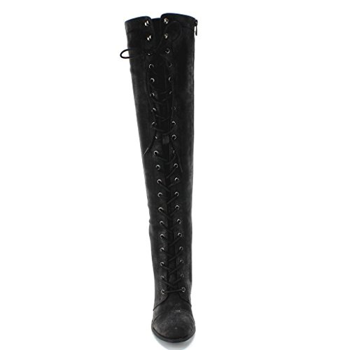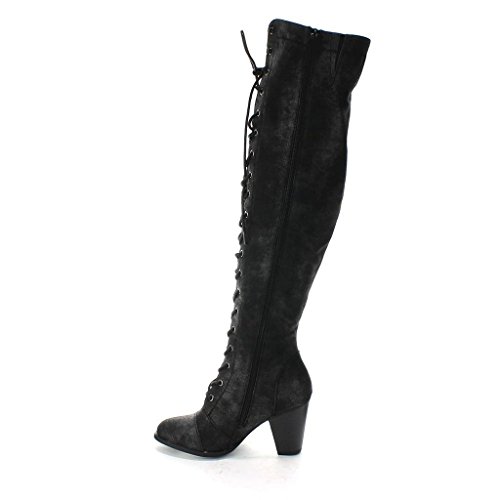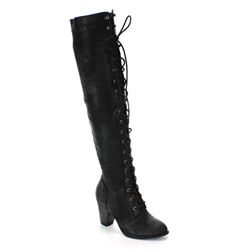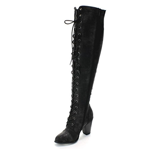 Forever Camila-48 Womens Chunky Heel Lace Up Over The Knee High Riding Boots