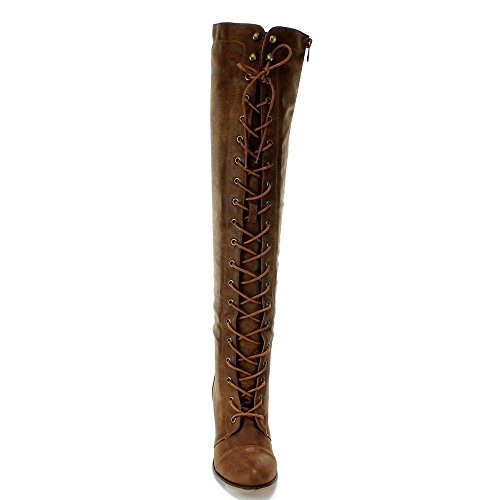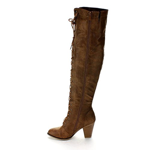 Forever Camila-48 Womens Chunky Heel Lace Up Over The Knee High Riding Boots,Tan,7