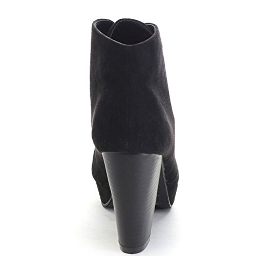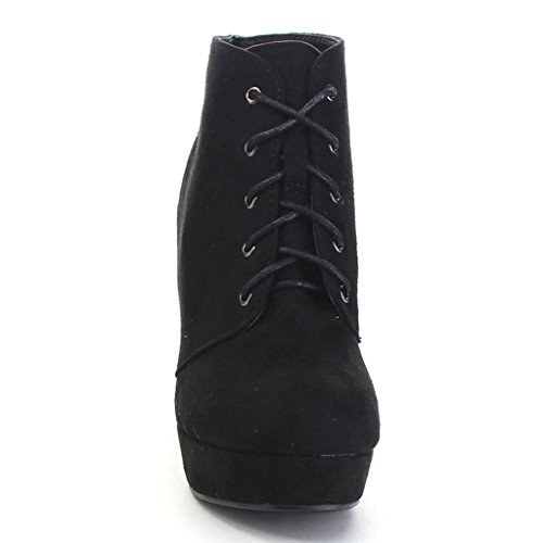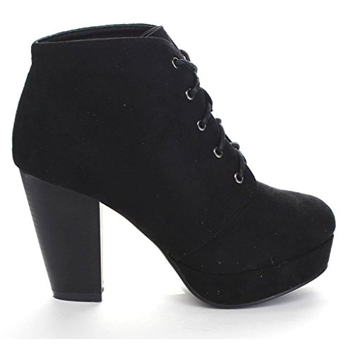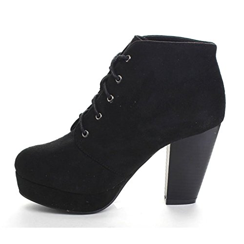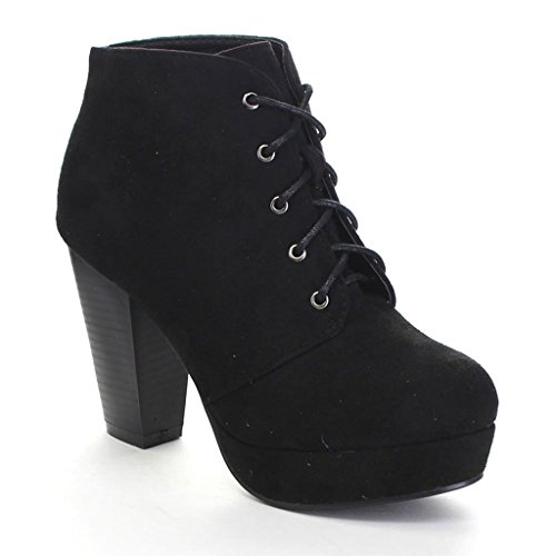 Forever Camille-86 Women's Comfort Stacked Chunky Heel Lace Up Ankle Booties,Black,7.5