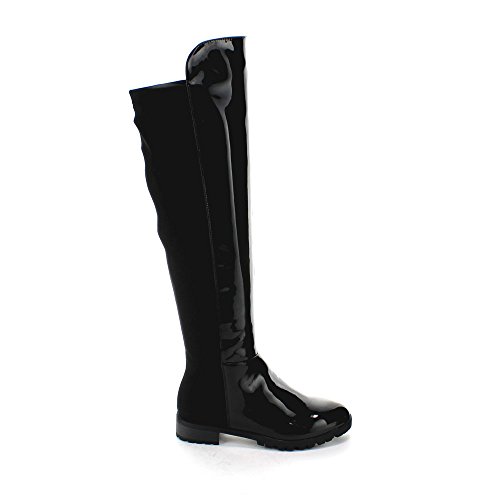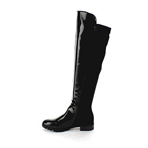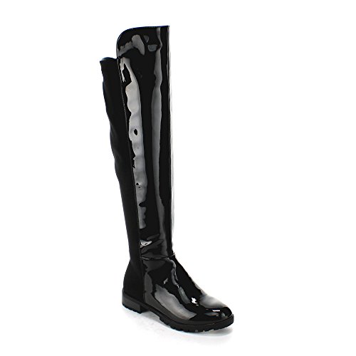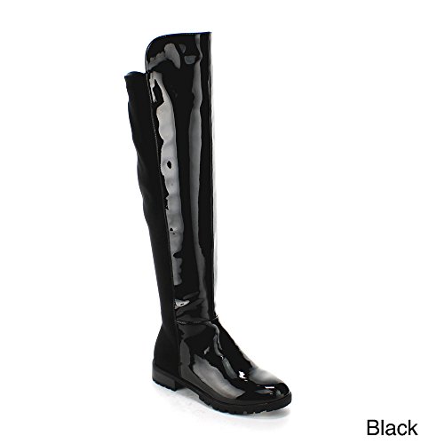 FOREVER FIFTY-50-4 Women's Fashion Two Tone Over The Knee High Slick Riding Boot, Color:BLACK, Size:5.5