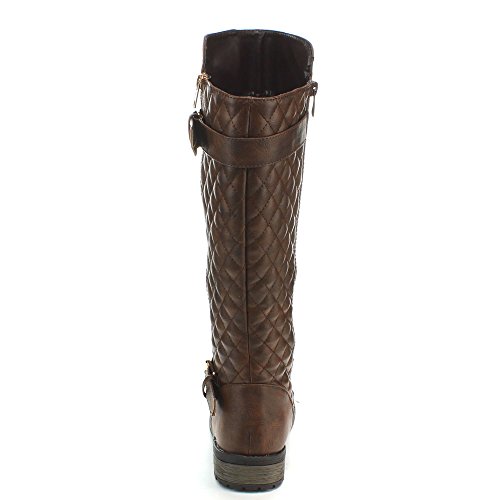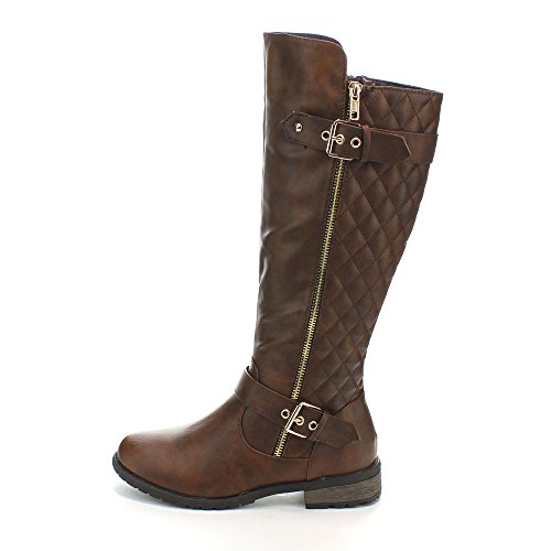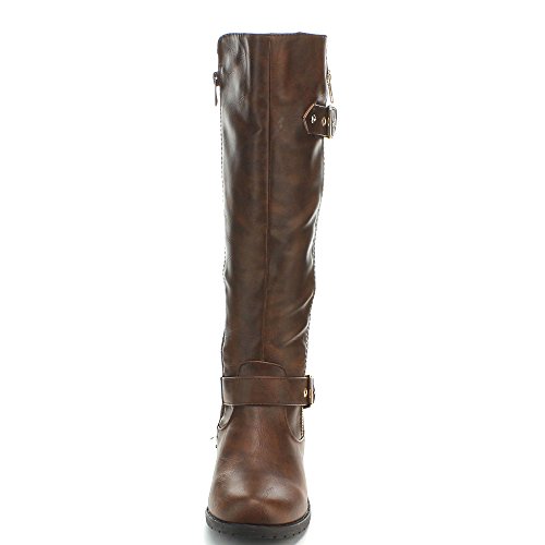 FOREVER MANGO-21 Women's Winkle Back Shaft Side Zip Knee High Flat Riding Boots, Color:BROWN, Size:8