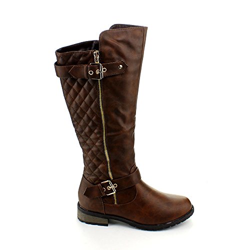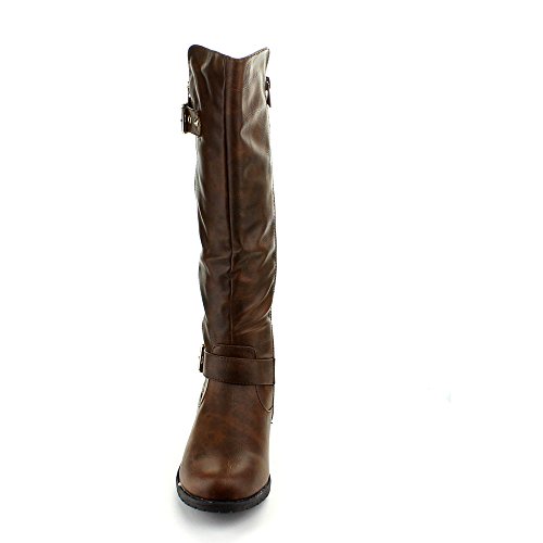 FOREVER MANGO-21 Women's Winkle Back Shaft Side Zip Knee High Flat Riding Boots