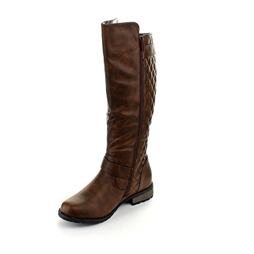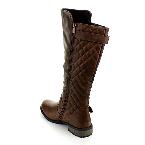Featuring the winkle back shaft and two bands with metallic buckles at shaft and ankle,this knee substantial boot offers you a wonderful dressing encounter with its flat heel.