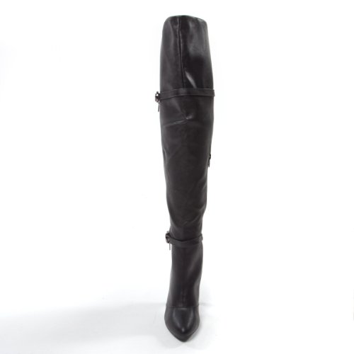 Forever Womens FOCUS35 Closed Round Toe High High Over the Knee Zipper Fold Over High Heel Stiletto Boots Shoes, Black PU Leather, 9 B (M) US