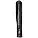 Tall, sleek in excess of the knee boot with stretch panel at back of shaft. Decorative buckle and metal bits.