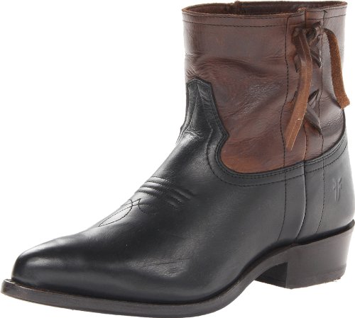 - This two-tone ankle boot from FRYE features a raw-lace detail for added western charm.