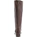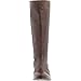 - Knee-high equestrian-style boot featuring exposed back zipper with button tabs at entry and heel
