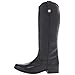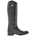 - Knee-high riding boot with antiqued logo button atop dual pull-on loops