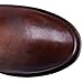 - Tall boot in rustic vintage leather featuring stacked shaft with deep scallop at back opening