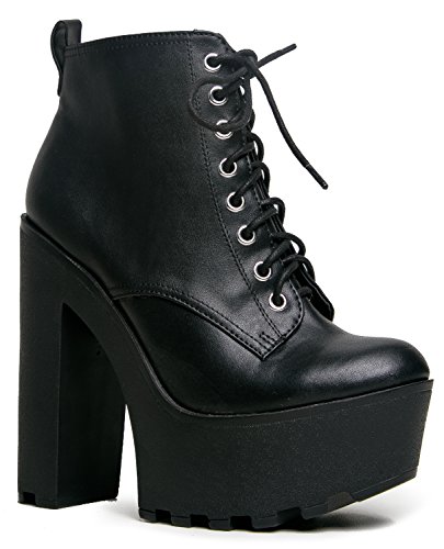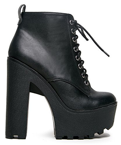 GRU Lace Up Chunky Platform Lace Up Heeled Ankle Boot Bootie