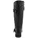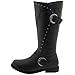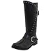 - Knee-high motorcycle boot with round buckles and curved studs along stiched shaft