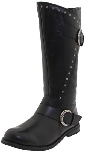 Harley Davidson Boots for the gal who loves to flaunt boots with attitude The Sapphire boot attributes a complete grain leather foot below a matching 13\" leather shaft with silver-tone stud embellishments. 1\" block heel. Rounded toe profile. Within locking zipper gives effortless on and off. Imported.